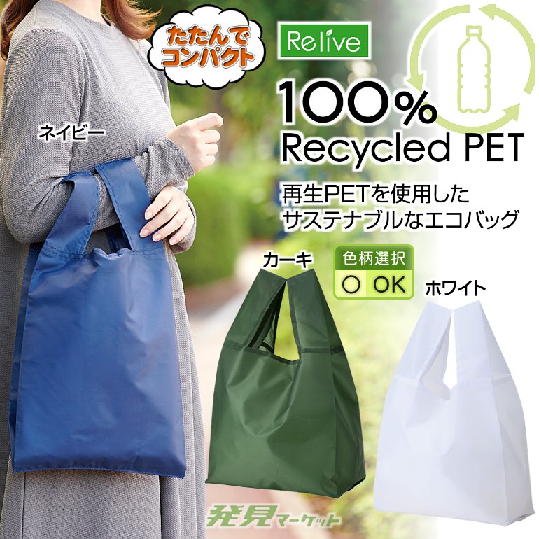 リライブ 100%再生PET クルクルたためるエコバッグ(色選択)