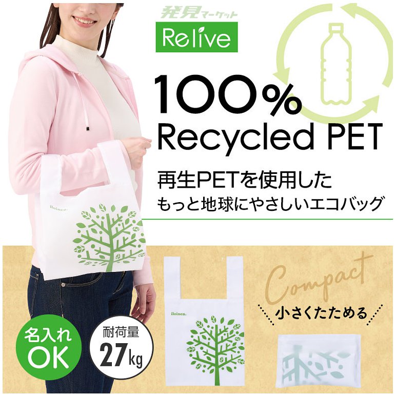 リライブ 100%再生PET たっぷりマチのコンビニエコバッグ(リーフ)