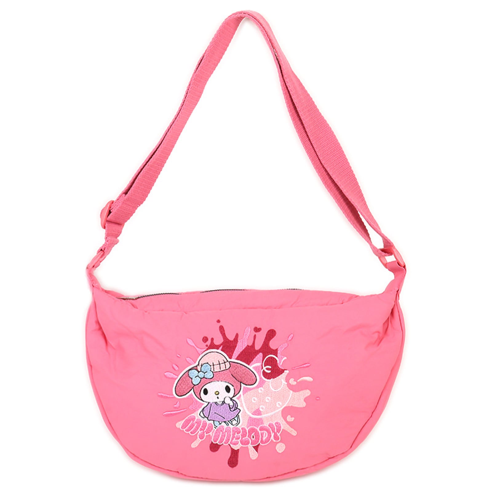 マイメロディ 刺しゅうラウンドショルダーバッグ 軽量ナイロン ピンク シンプル 刺繍 サンリオ sanrio キャラクター