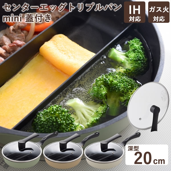 センターエッグトリプルパン ガラス蓋セット 21cm 仕切り フライパン 蓋付き たまご焼き 同時調理 卵焼き 玉子焼き 朝食 お...