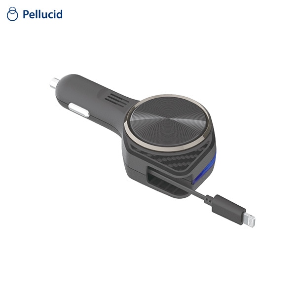 ペルシード リール式充電器 Lightning BK/GM 巻き取り コードスッキリ スマホ iPhone iPad 12/24V...