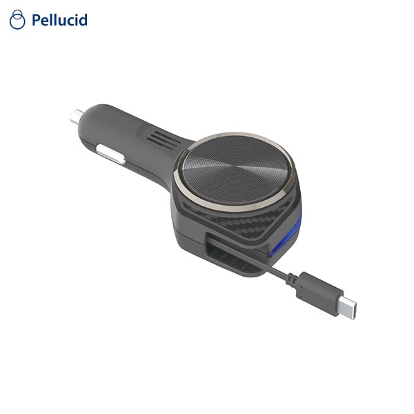 ペルシード リール式充電器 Type-C BK/GM 巻き取り コードスッキリ スマホ android 12/24V 3.0A 5...