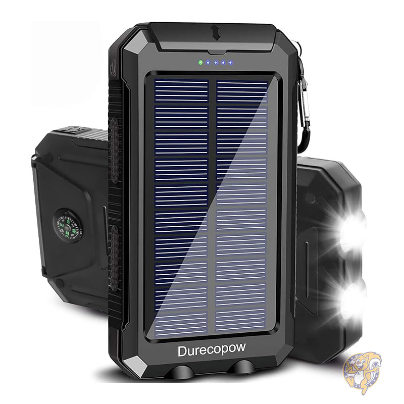 ソーラー充電器 20000mAh ポータブル 防水 コンパス付き 2 LED ライト懐中電灯 災害 S1008D Durecopo...