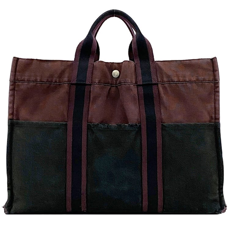 エルメス トートバッグ フールトゥ MM ec-22512 ボルドー ブラック トート キャンバス 中古 HERMES 大容量 ポ...
