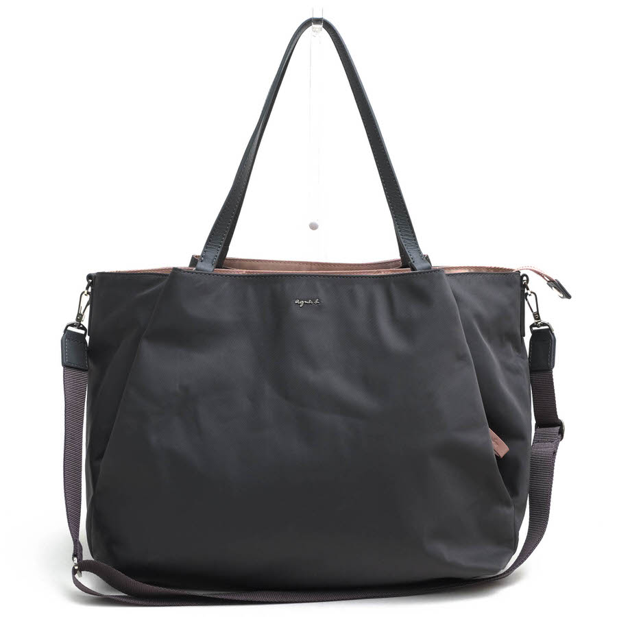 agnes b. OAS14-01 / アニエスベー 牛革 2WAY ショルダーバッグ ブラック 黒 トートバッグ レディース