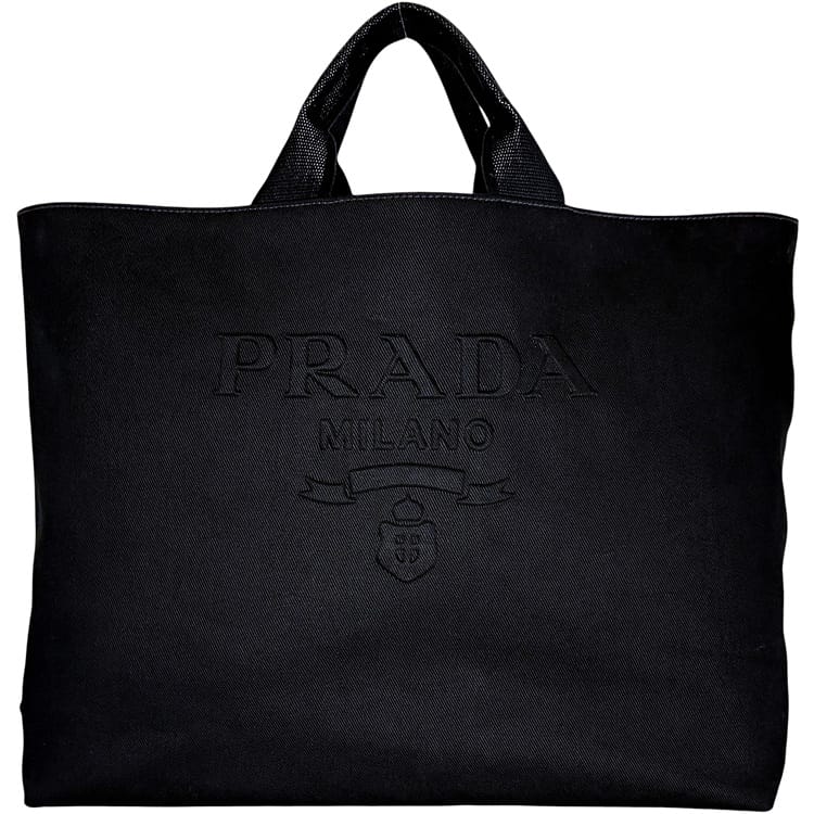 プラダ トートバッグ ドリル ロゴ ブラック NERO 2VG081 美品 キャンバス 中古 56 PRADA ラージトート キャ...