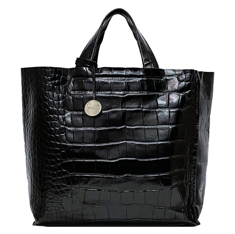 フルラ ハンドバッグ ec-22644 ブラック トートバッグ レザー 中古 FULRA クロコ型押し ヴィンテージ 軽い 定番 ...