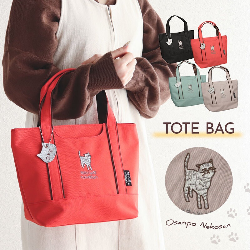 トートバッグ レディース 大人 軽量 小さめ ポケット ファスナー 軽い マチ広猫 ネコ 鞄 かばん 黒 ブラック レッド ミント...