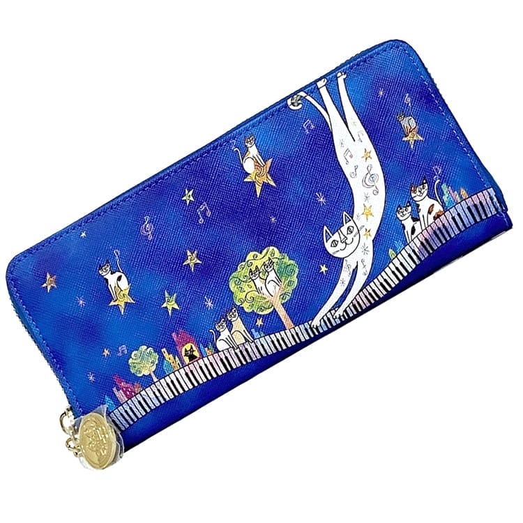 おかべてつろう ラウンドファスナー 長財布 ec-22930 ブルー マルチカラー 音楽は心を軽くしてくれる魔法みたい 未使用 美...