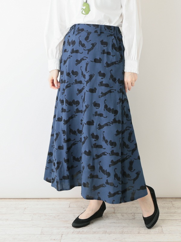 再入荷【30%OFF】各色1点限り/ネコプリントコットン スカート 22W026