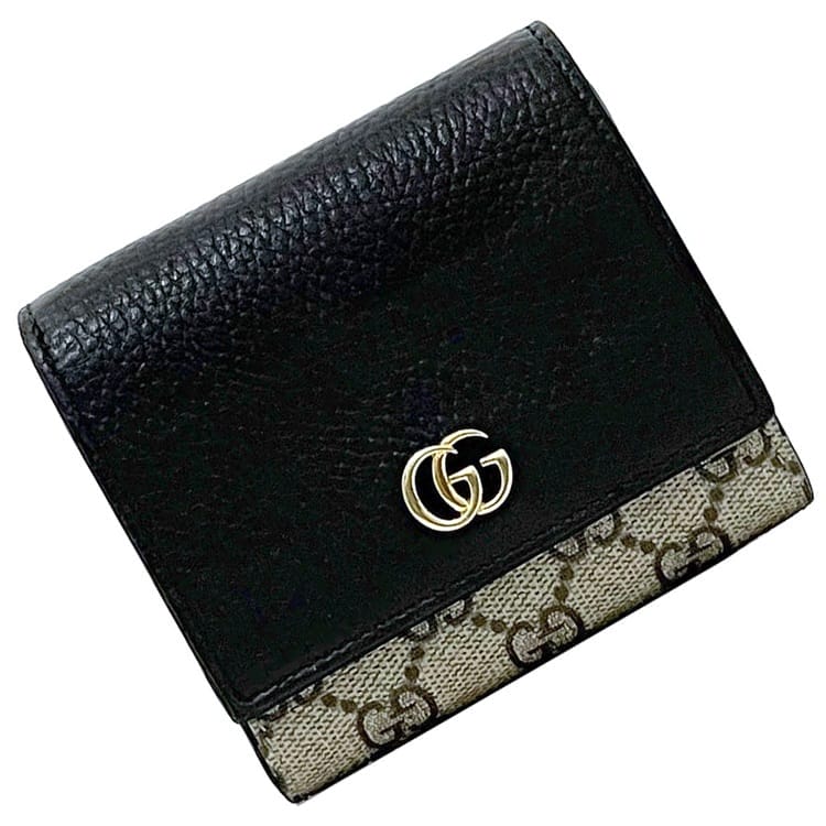 グッチ 二つ折り財布 ec-23332 ベージュ ブラック GGマーモント 598587 財布 美品 PVC レザー 中古 493...