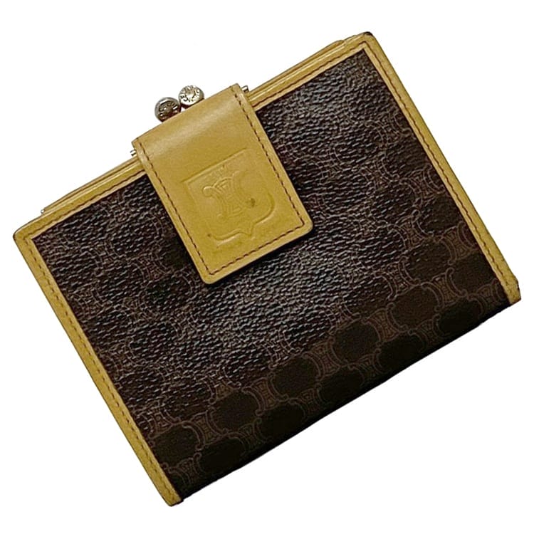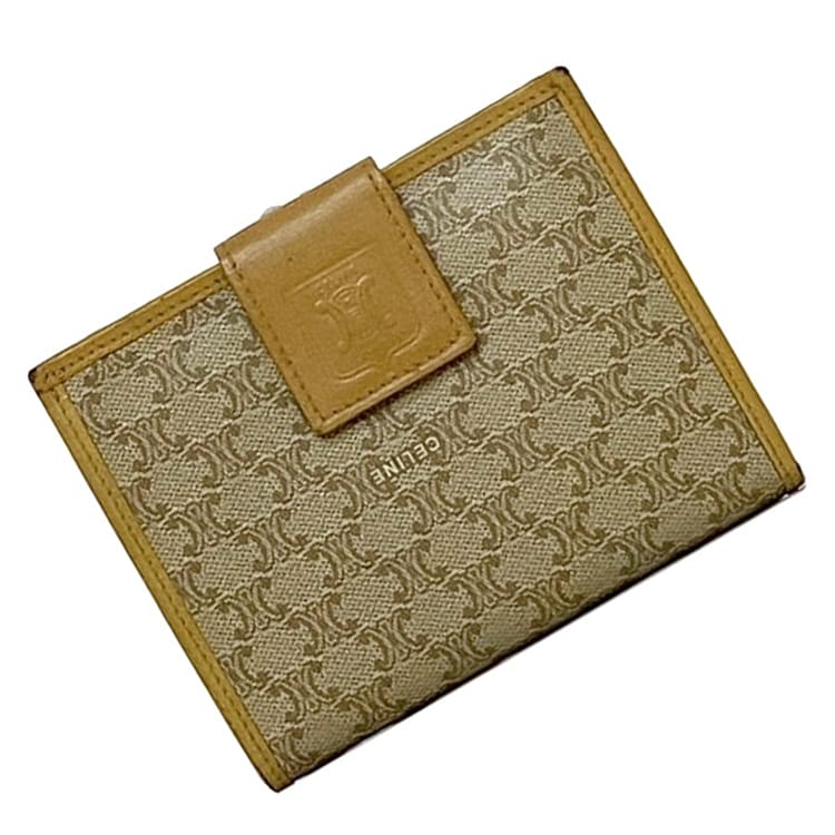 セリーヌ 二つ折り がま口 財布 ec-22717 ブラウン キャメル マカダム 折り財布 PVC レザー 中古 M15/2 CE...