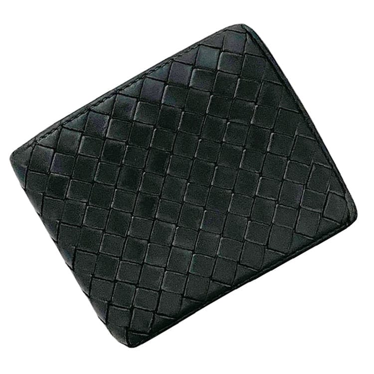 ボッテガヴェネタ 二つ折り 財布 ec-24126 ブラック イントレチャート コンパクト レザー 中古 B04823413Q B...