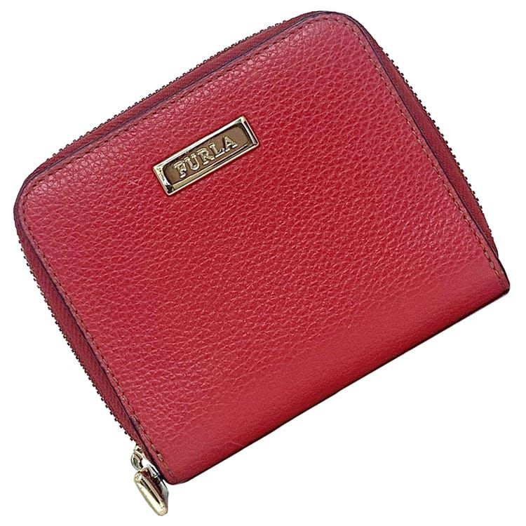 フルラ 二つ折り 財布 ec-22004 レッド PS86 B30 美品 ファスナー レザー 中古 FURLA シンプル 折り財布...
