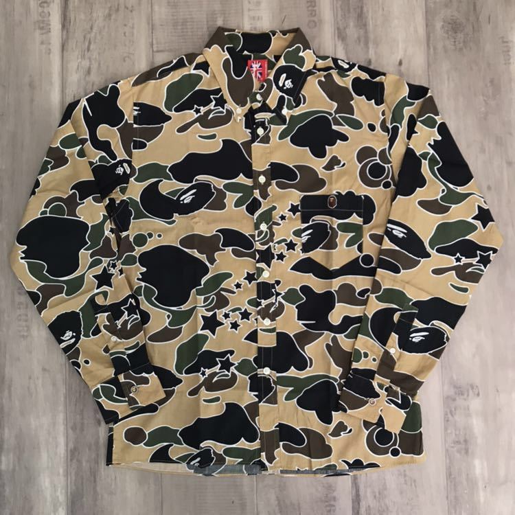 ★美品★ sta camo BD長袖シャツ yellow Sサイズ a bathing ape bape psyche エイプ ベ...