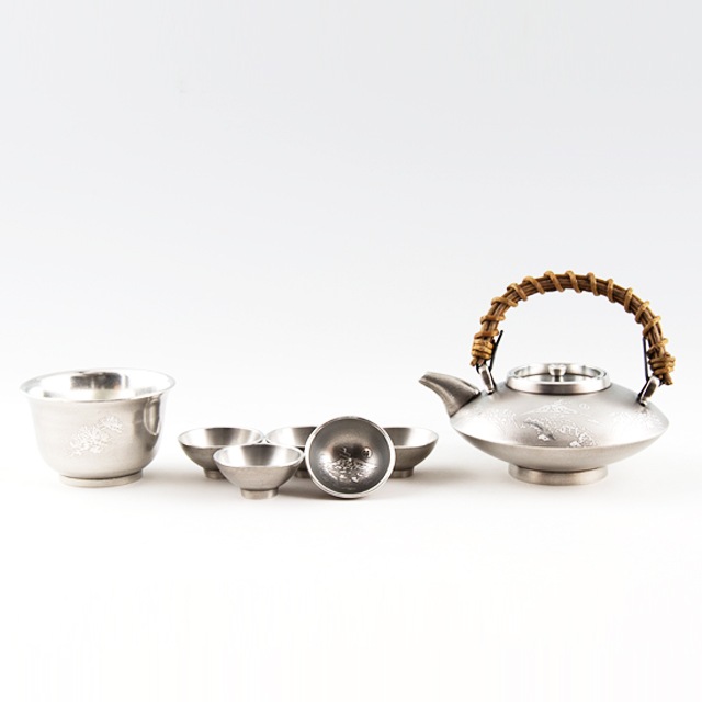 薩摩錫器 錫 黒じょか・ちょか イブシ加工 錫手 盃5ケ 盃洗付 300ml 59-5-1 岩切美巧堂 代引不可