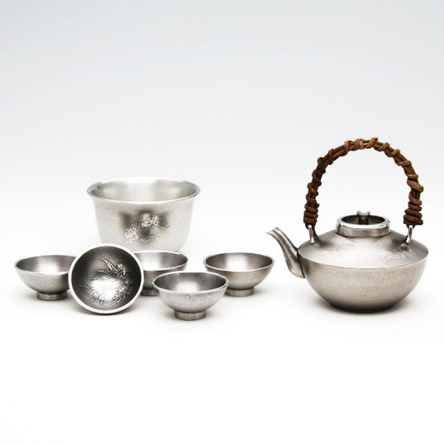 薩摩錫器 錫 黒じょか・ちょか イブシ加工 盃5ケ 盃洗付 300ml 58-5-1 薩摩錫器工芸館 代引不可※12月24日からの...