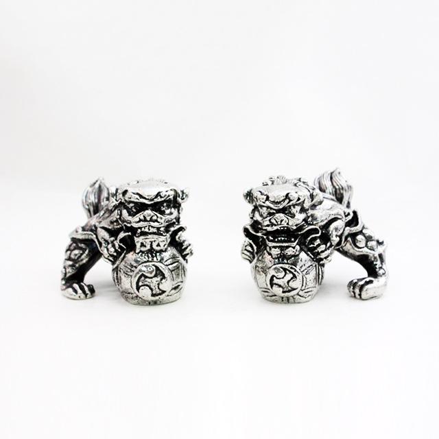 薩摩錫器 錫 置物 獅子 (一対) イブシ加工 177 薩摩錫器工芸館 代引不可※12月24日からのご注文は1月6日より順次発送