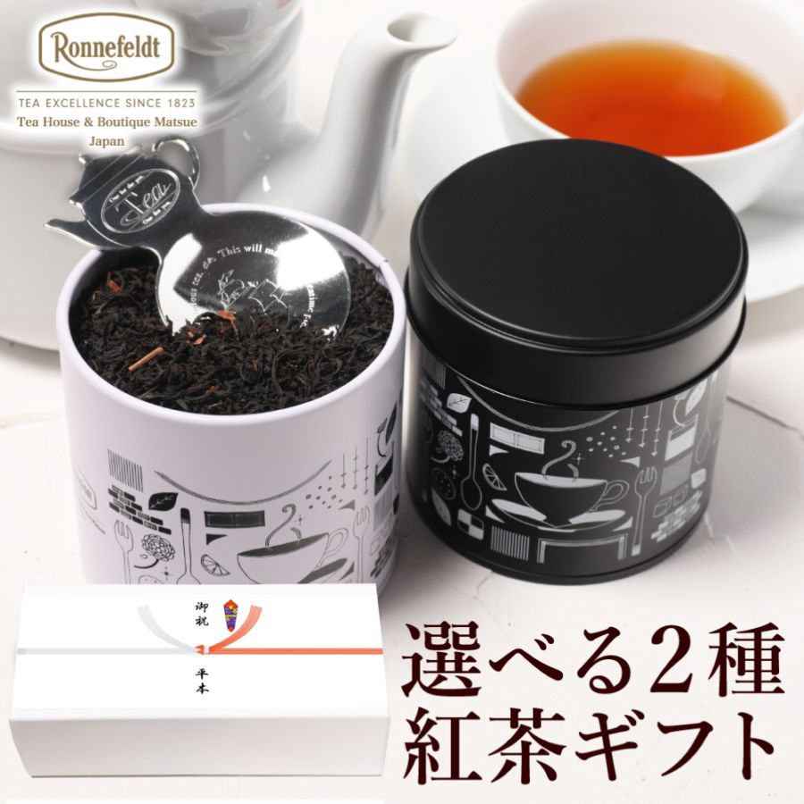 【宅配便】ロンネフェルト 選べる茶葉2種入り紅茶缶とティースプーンのギフトセット のし紙包装