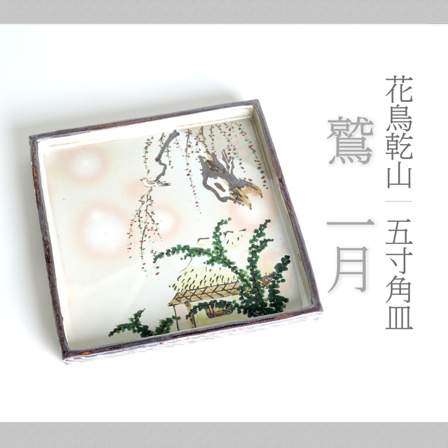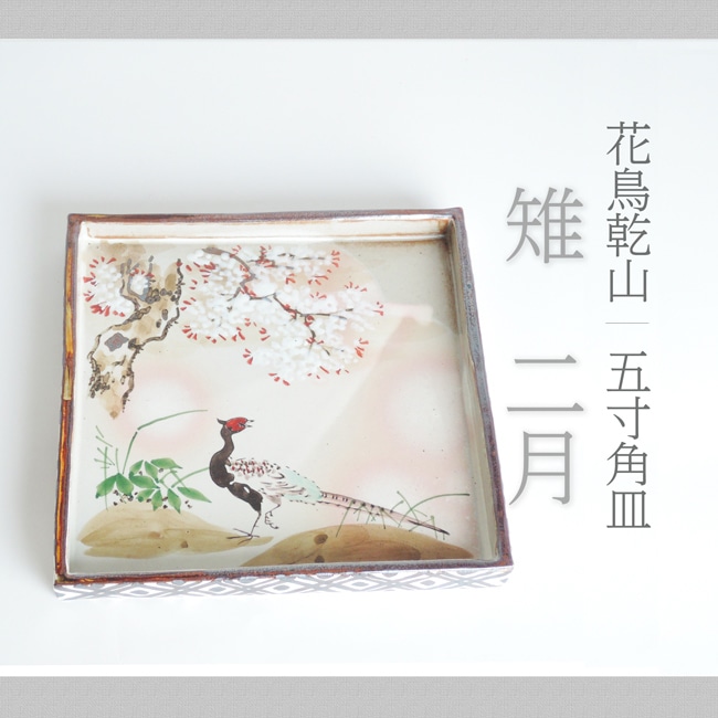清水焼 花鳥乾山 五寸角皿 「雉 二月」