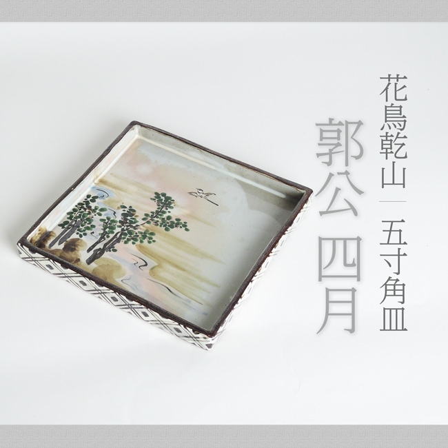 清水焼 花鳥乾山 五寸角皿 「郭公 四月」