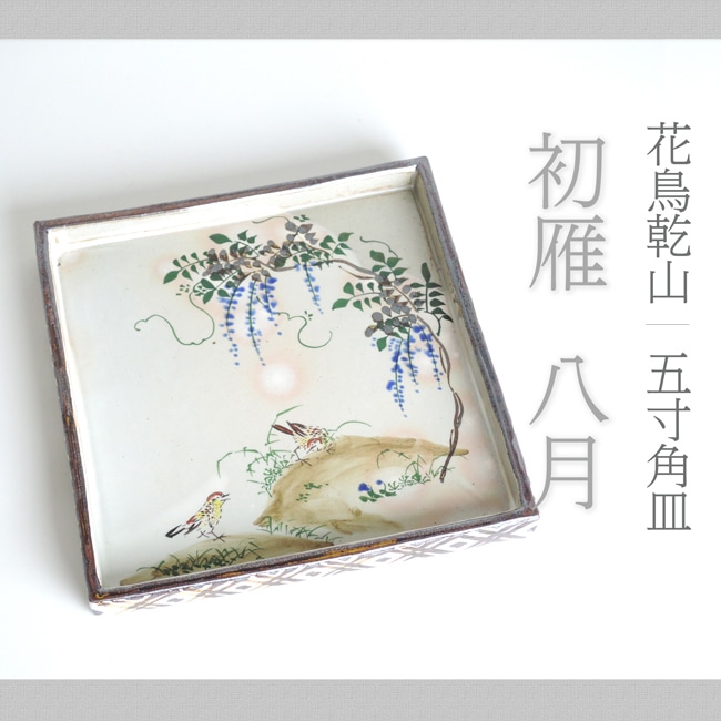 清水焼 花鳥乾山 五寸角皿 「初雁 八月」