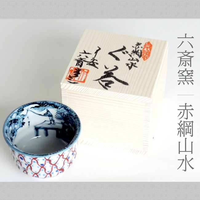 清水焼 ぐい呑み 六斎窯 「赤綱山水」