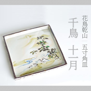 清水焼 花鳥乾山 五寸角皿 「千鳥 十一月」