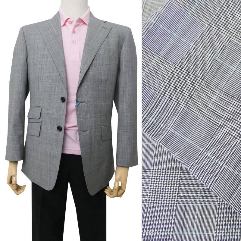秋冬 グレー千鳥格子 コットン&ニット ストレッチ 2つボタン シングルジャケット AB7
