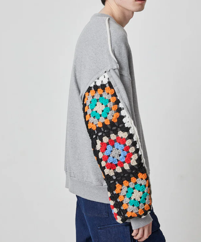 【DISCOVEREDディスカバード】CROCHET SLEEVE SWEAT (3色)(DC-SS25-CU-10)
