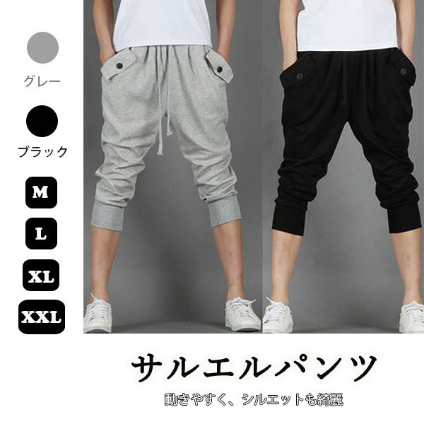 メンズ サルエルパンツ 七分丈 ボトムス パンツ ショートパンツ クロップドパンツ スウェットパンツ ウエストゴム スポーツ ダン...