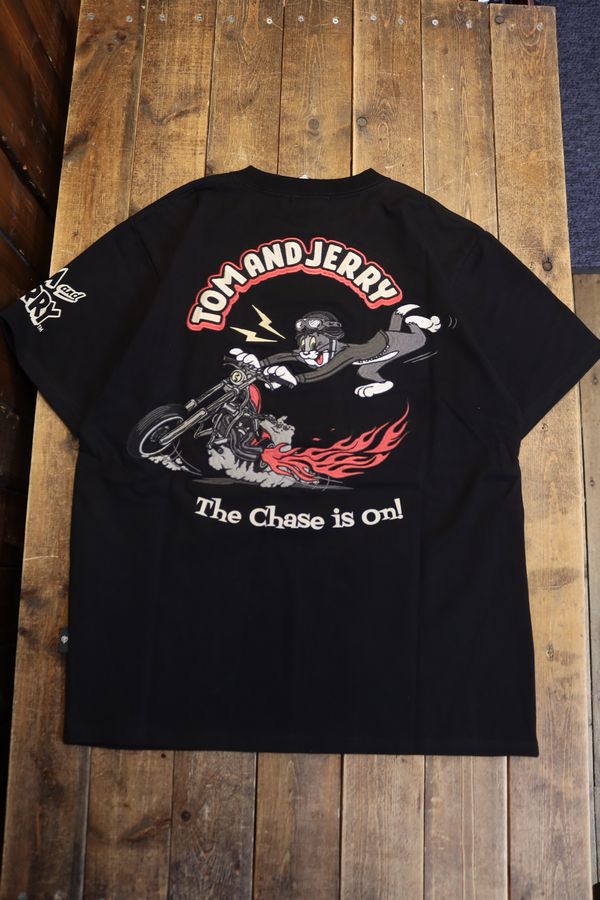 NEVERMIND×Tom and Jerry トムとジェリーコラボ TJN-2605 天竺半袖Tee 刺繍 バイク Tシャツ ブ...