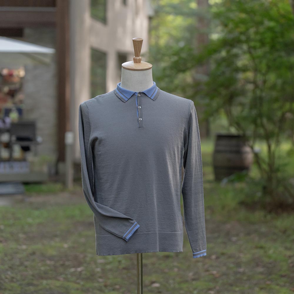 贅沢な梳毛のカシミヤ100% メンズポロセーター グレー色 Mサイズ 【着丈:約63cm】