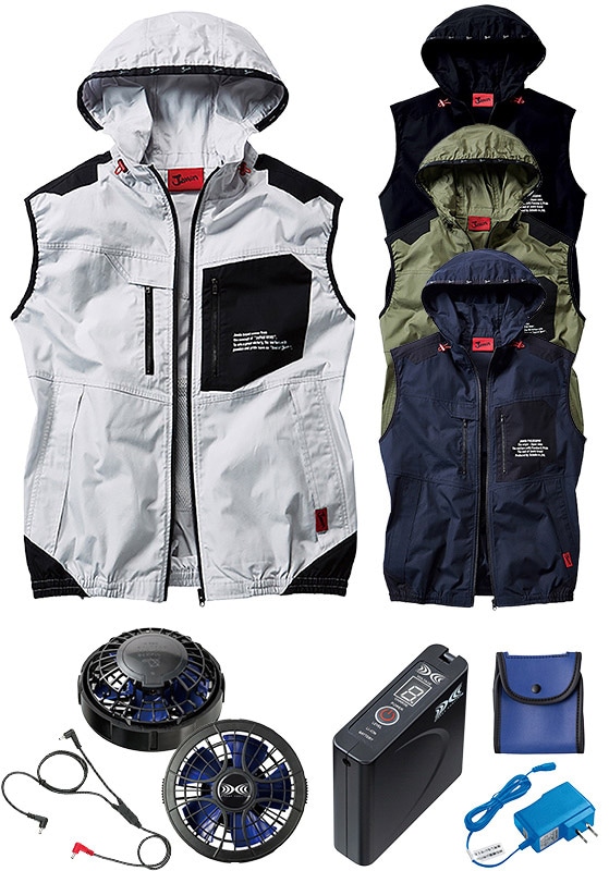 自重堂 Jawin(ジャウィン) 空調服 ベスト(フード付) パワーファン対応スターターキット(バッテリー&ファン)セット 541...