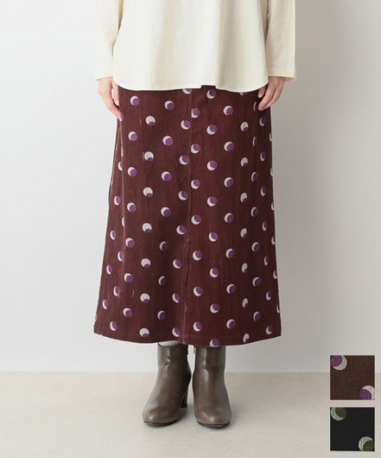 【50%OFF】ドットプリントコットンコーデュロイスカート