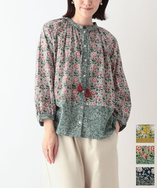 【20%OFF】フローラルブロックプリントコットンブラウス