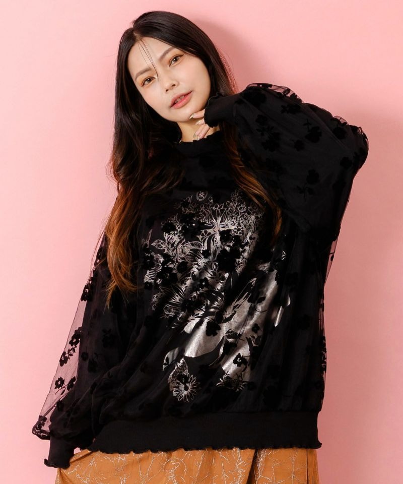 イズスカラー / 花束柄箔プリントチュール重ねプルオーバー