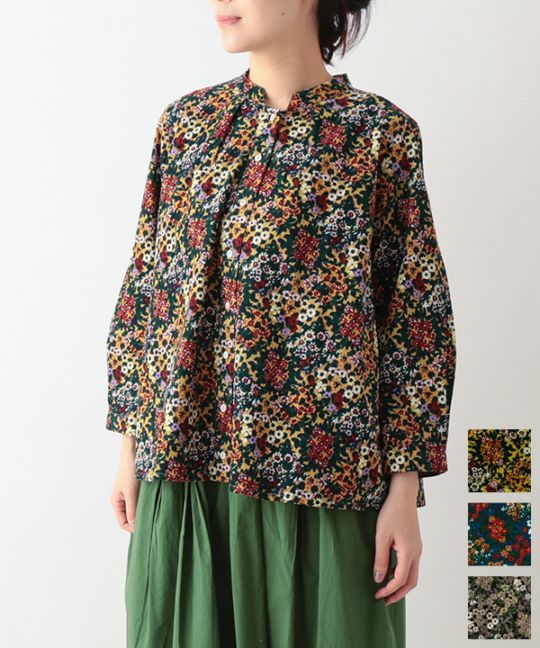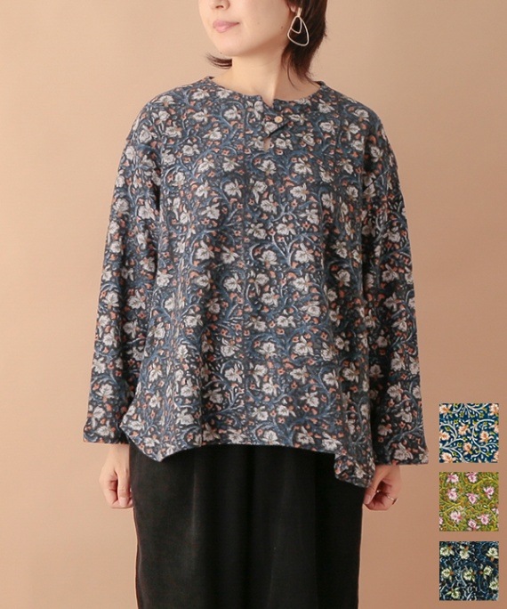 【30%OFF】ブーケプリントコットンコーデュロイブラウス