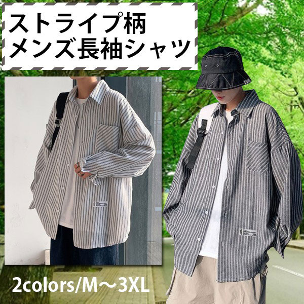 【セール】即納 安い メンズ シャツ 長袖 ストライプ柄 ビッグシルエット ゆったり オーバーサイズ カジュアル 街着 春夏秋コー...