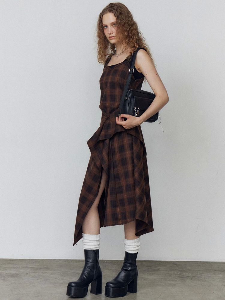 LANDHAUS チェック柄メタルボタンチロルワンピース