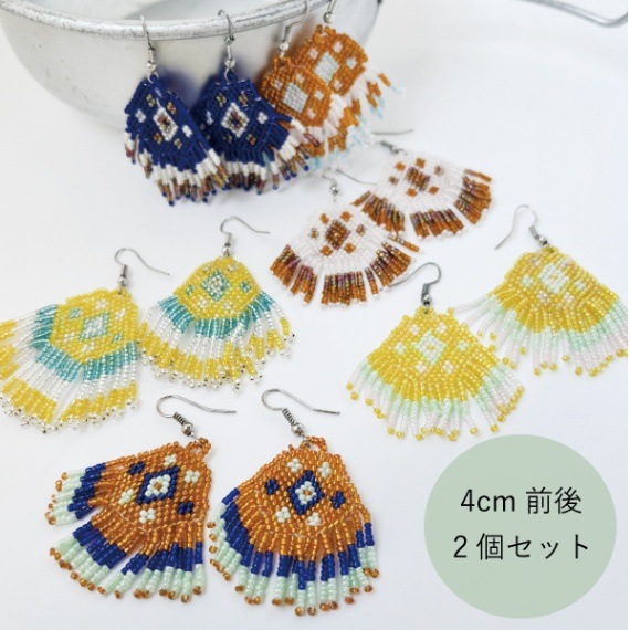 ネイティブ柄ハンドワークビーズピアス2個セット オルテガ柄 ビーズアクセサリーチャーム作り インディアンボヘミアンエスニックアクセ...
