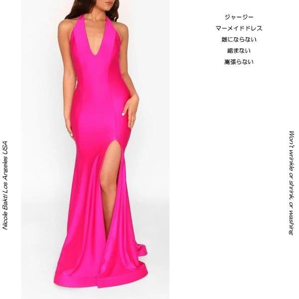 インポートドレス シャンソン ジャズ 声楽 ホルターネック ピアノ フューシャピンク マーメイド スリンキィジャージー 演奏会ド...