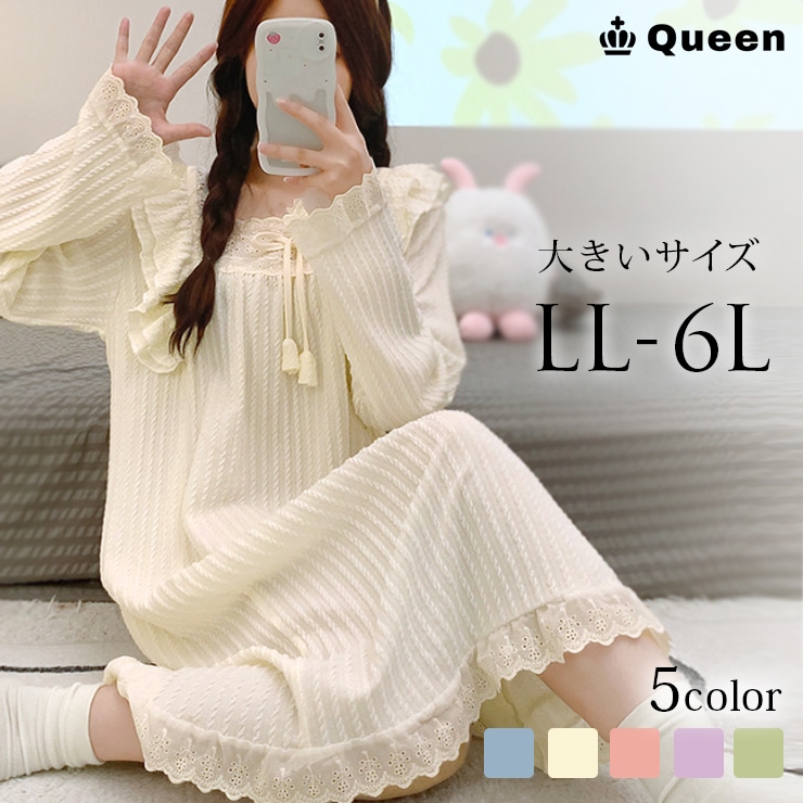 ネグリジェ 大きいサイズ ワンピース パジャマ 寝巻き ルームウェア 長袖 春 秋 やわらか ふんわり LL 3L 4L 5L 6...