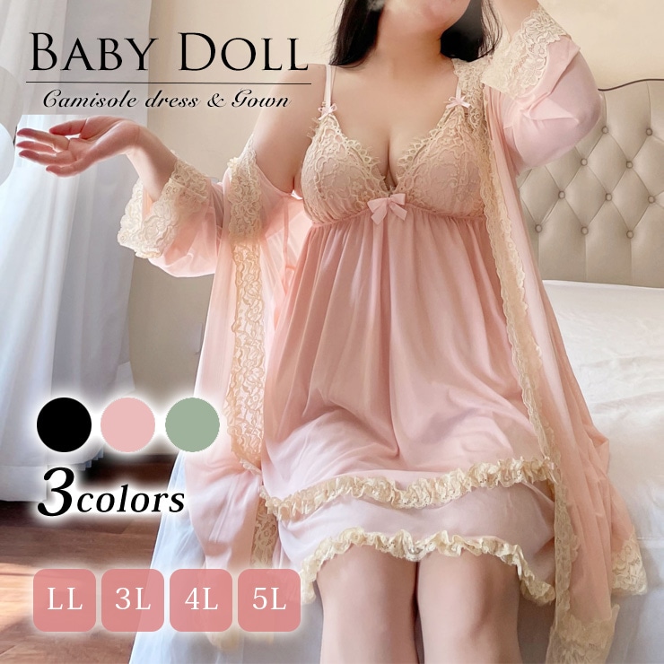 ベビードール 大きいサイズ レディース ガウン キャミワンピ 下着 ナイトウェア ルームウェア ネグリジェ LL 3L 4L 5L...