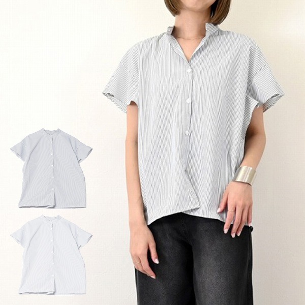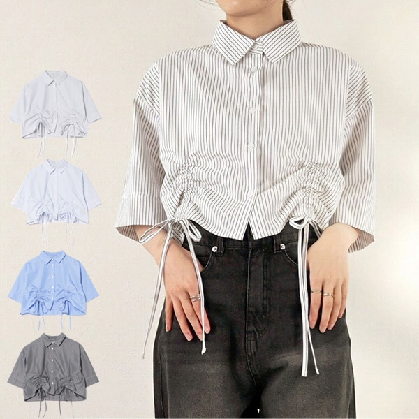 先染めストライプハーフスリーブドロストクロップドシャツ