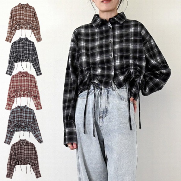 先染めネルチェックドロストクロップドシャツ