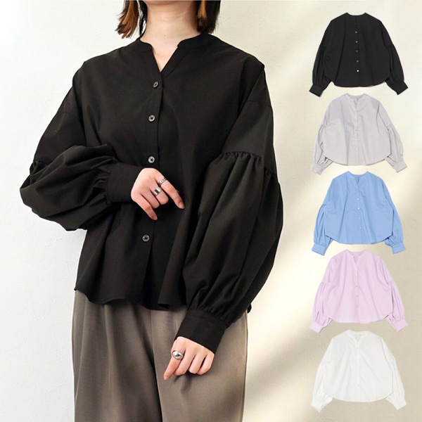 ブロードボリュームスリーブ袖リブブラウス