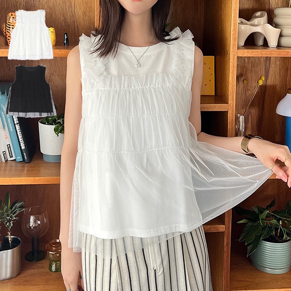 接触冷感チュールドッキングノースリーブトップス