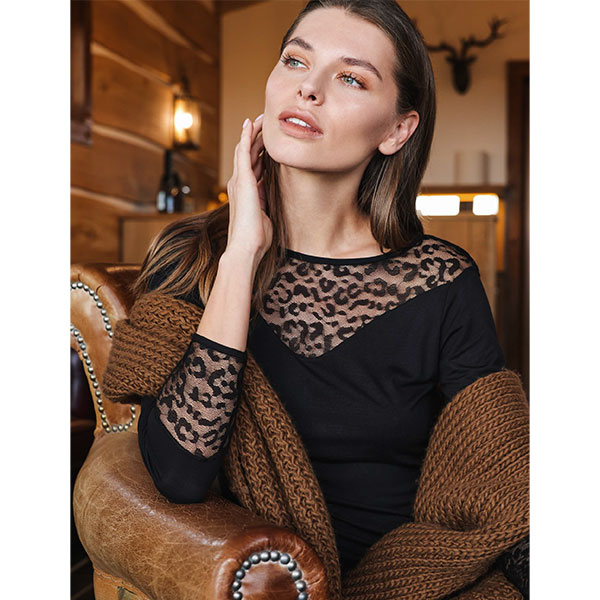 イタリア インポート ブランド カットソー COTONELLA GD477 アニマル柄切替カットソー 黒