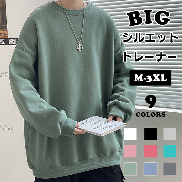 【即納】トレーナー メンズ プルオーバー ユニセックス BIGシルエット 無地 おしゃれ クルーネック ラウンドネック 長袖 裏起...